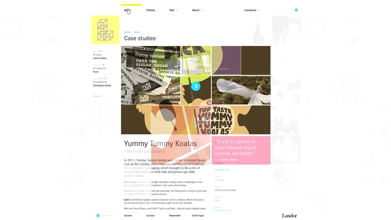 We created a dynamic website that better conveys the company culture, client set and design aesthetic that Landor has developed over the last 60 years. Bringing elements like social media and audience response-driven design to the forefront, the new site helps confirm Landor as an industry innovator and better expresses who they are as an agency.